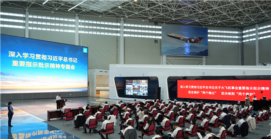 会上,公司基层党组织书记、型号总师、质量管理条线、先进典型代表进行了交流发言。他们表示,每当项目处于关键时期,习近平总书记就用讲话或重要批示给大飞机人指明方向。嘱托就是旗帜,发挥把方向作用;嘱托就是号令,发挥管大局作用;嘱托就是动力,发挥保落实作用。面对大飞机进入产业化发展新阶段,我们要牢记习近平总书记嘱托,高举“航空强国、‘四个长期’、永不放弃”的旗帜,牢牢守住民用航空事业底线红线生命线,努力把C919打造成航空公司爱买、飞行员爱飞、旅客爱坐的世界一流机型。