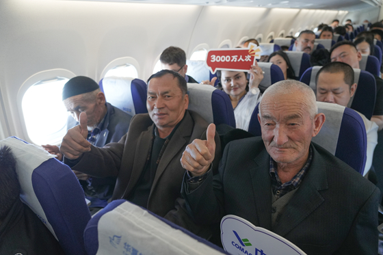 12月3日,在喀什飞往伊宁的华夏航空G54969航班上,C909飞机迎来了第3000万名乘客。自2016年6月28日商业首航以来,C909飞机累计安全运送旅客突破3000万人次,标志着C909飞机开启了规模化运营新征程。